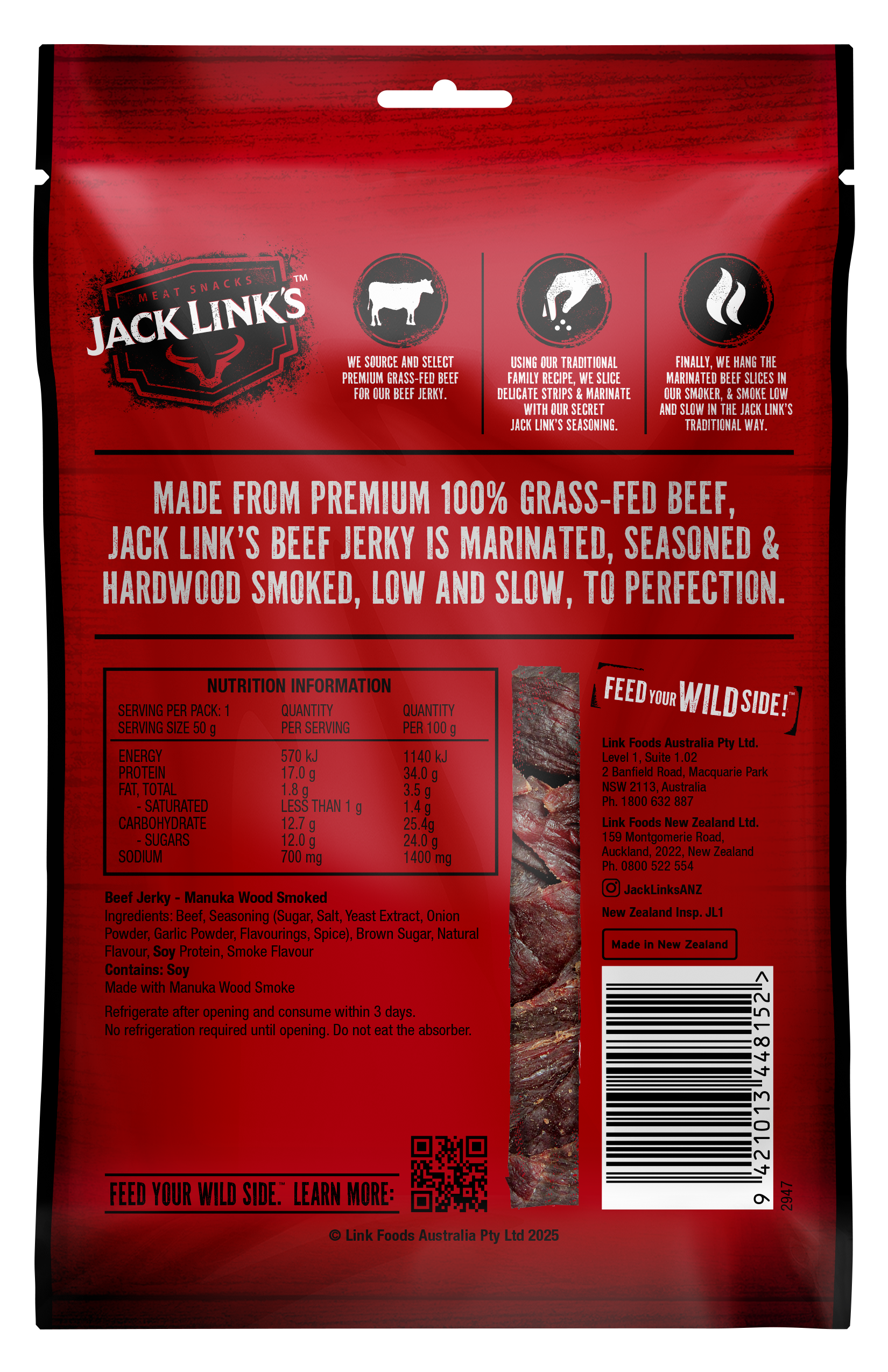 Based on 50g Manuka Smoked Beef Jerky