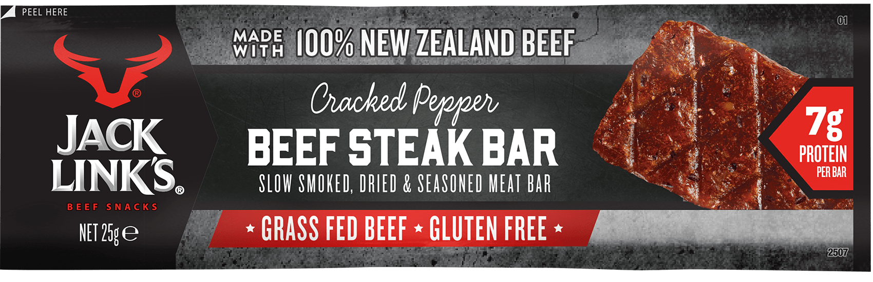 Say goodbye to your bland protein bars and hello to tasty meat. That’s right, made with 100% beef and cracked pepper and a hit of Protein , your protein snack routine just tripled in flavour.